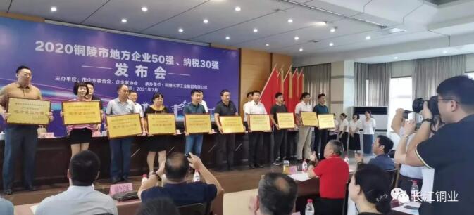 2021年7月6日下午,由市企業(yè)聯(lián)合會(huì)、市經(jīng)信局、市稅務(wù)局聯(lián)合舉辦的2020年度銅陵市“地方企業(yè)50強(qiáng)”“納稅30強(qiáng)”發(fā)布會(huì)在銅化集團(tuán)會(huì)議室隆重召開。副市長(zhǎng)王綱根,市老領(lǐng)導(dǎo)、市“四會(huì)”創(chuàng)始會(huì)長(zhǎng)唐世定,市委宣傳部副部長(zhǎng)章祎,市中小企業(yè)局局長(zhǎng)朱永平,市稅務(wù)局黨委委員、副局長(zhǎng)李軍等領(lǐng)導(dǎo)出席會(huì)議。發(fā)布會(huì)上,我司被授予“2020年度銅陵市地方企業(yè)50強(qiáng)”的榮譽(yù)稱號(hào)!